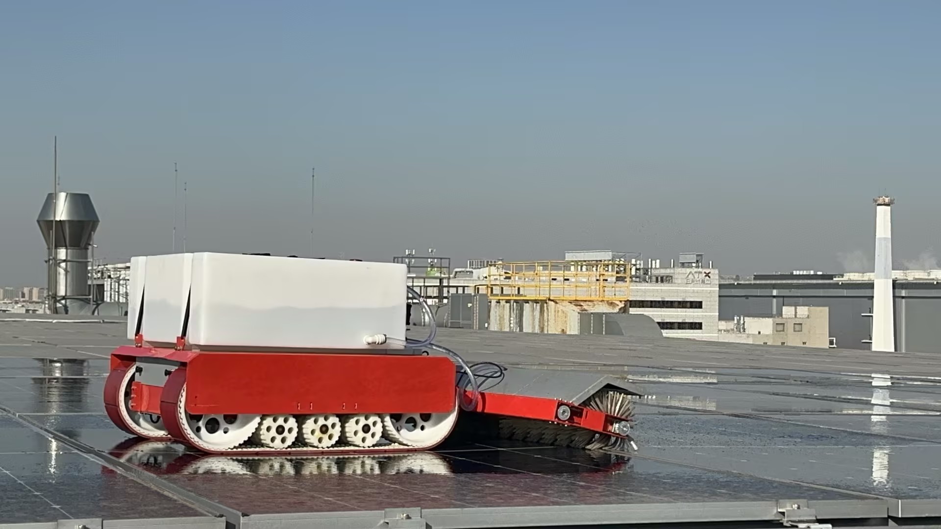 与此同时,金科中心光伏项目现场的演示同样吸睛。作为张江智电重点落地的智能化运维项目,这款光伏清洗机器人专为大面积光伏阵列设计,破解了传统清洗 “耗水多、损伤板、效率低” 的困境: